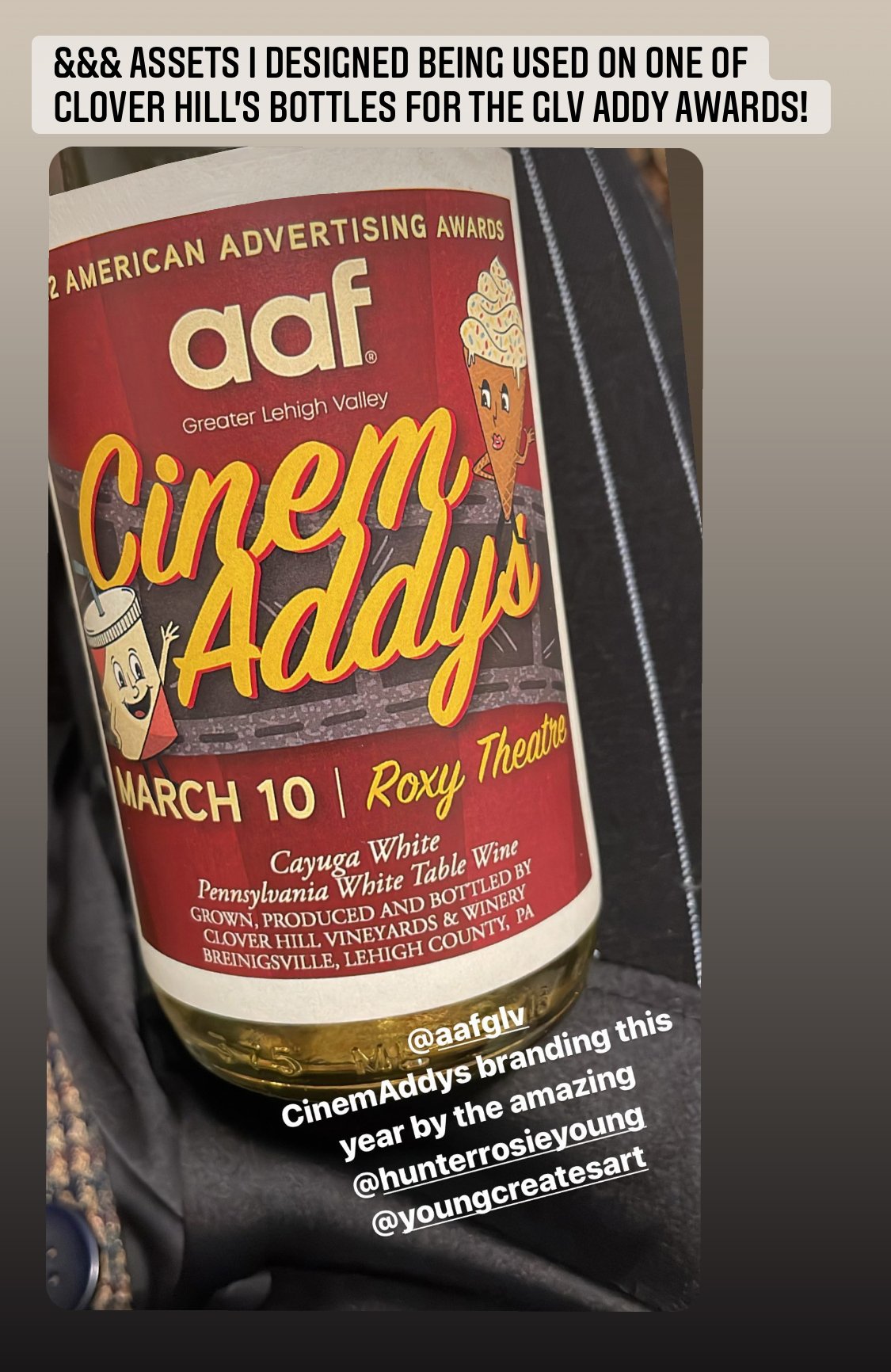 Design work for the AAF Greater Lehigh Valley. Inspiration is pulled from bold vintage movie theaters and old-timey concession movie characters to create a fun theme for the 2022 GLV Addy Awards. Antique shades of red create a backdrop for our bubbly concession characters to sweep you off your feet and bring you to the theatre for an award show you won’t forget! Grainy textures and our tasty..err.. delightful concession characters will transport you back to the scene of an old film.
